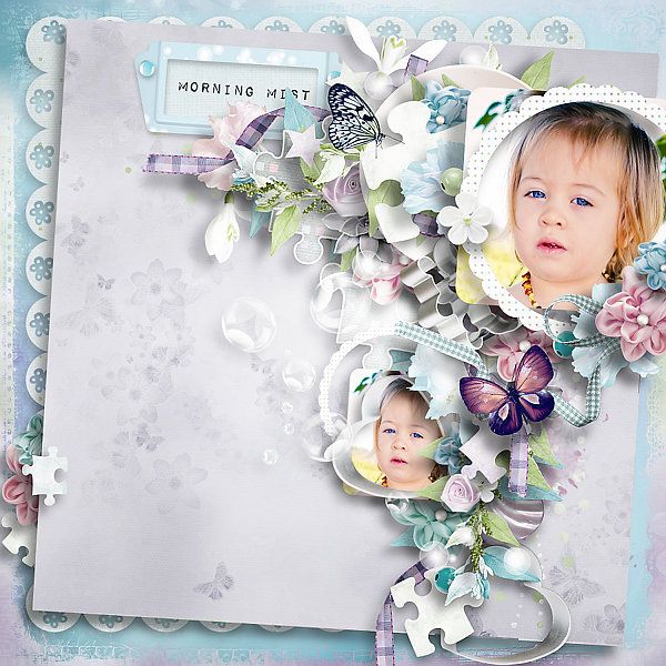 Morning Mist Kit and Morning Mist Clusters make perfect match for scrapping your babies, Wedding Days or just everyday moments you'd like to treasure in soft and dreamy colors.