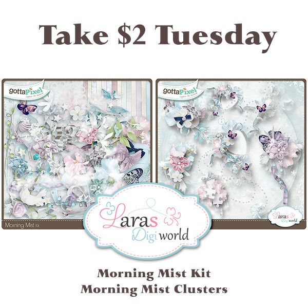 Check out new $2 digital scrapbooking deals from Lara's Digi World and whole Take $2 Tuesday category.